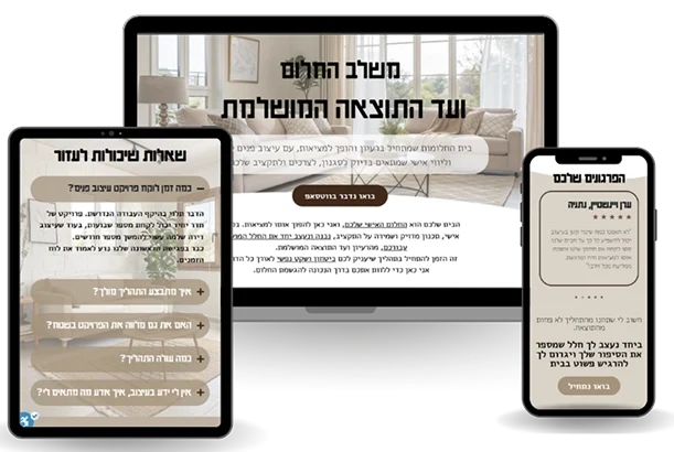 אנחנו עוברים שלב של אפיון וחקר צרכים, עיצוב בהתאמה אישית, ולאחר מכן בנייה טכנית מלאה בוורדפרס עם אלמנטור.