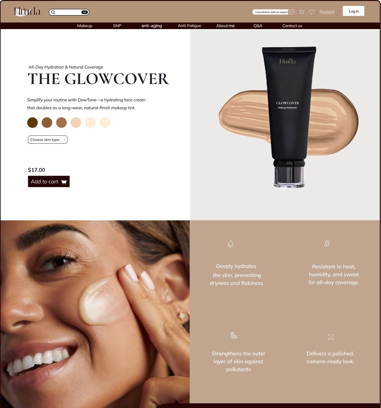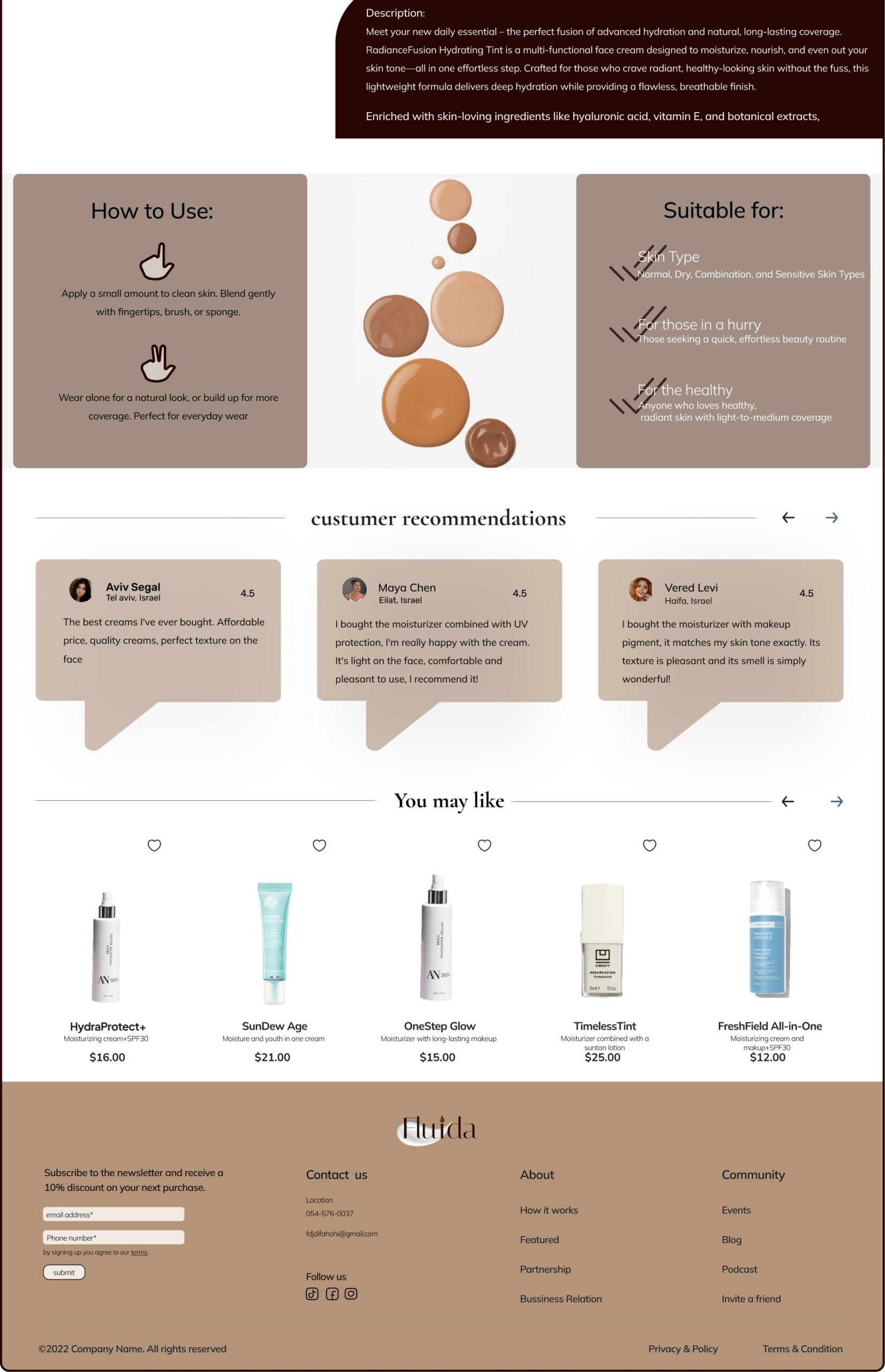 Fluida הוא אתר E-Commerce ייחודי בתחום הקוסמטיקה, המציע חוויית קנייה מותאמת אישית לקרמים לפנים.