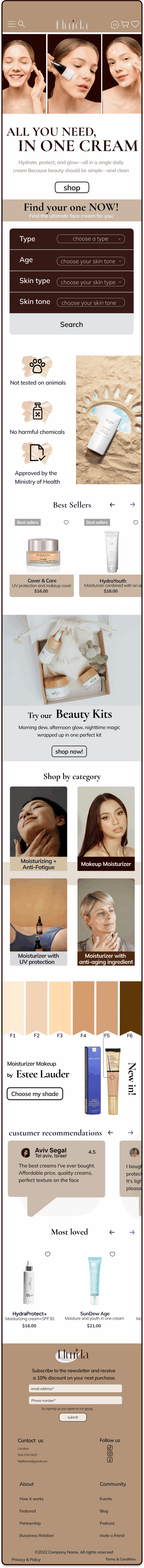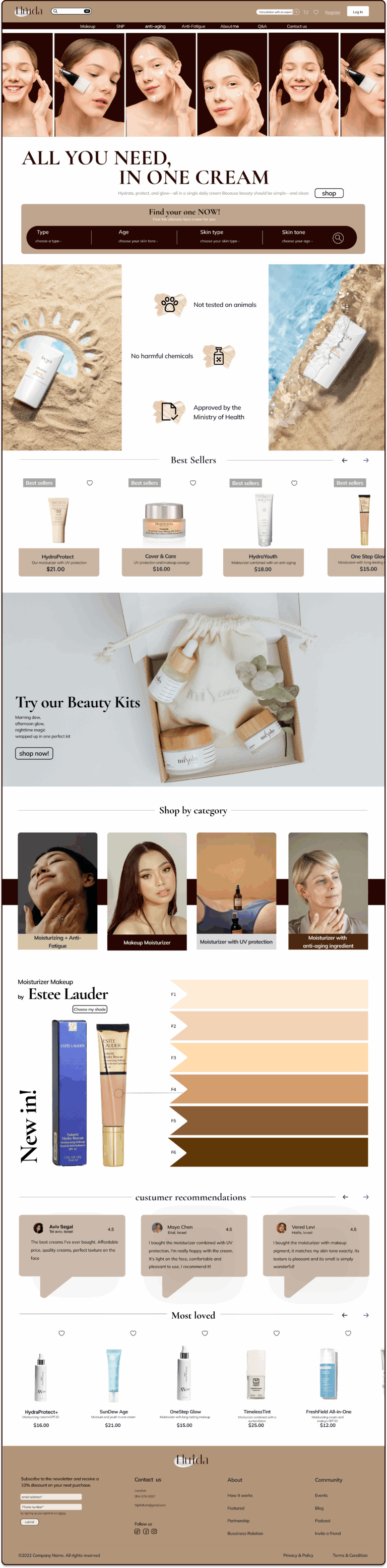 המטרה של האתר היא לפשט את תהליך הבחירה באמצעות שילוב מחקר UX מקיף ועיצוב UI מודרני, ולאפשר לכל משתמש למצוא את הקרם המתאים לו בצורה מהירה, יעילה ואינטואיטיבית.