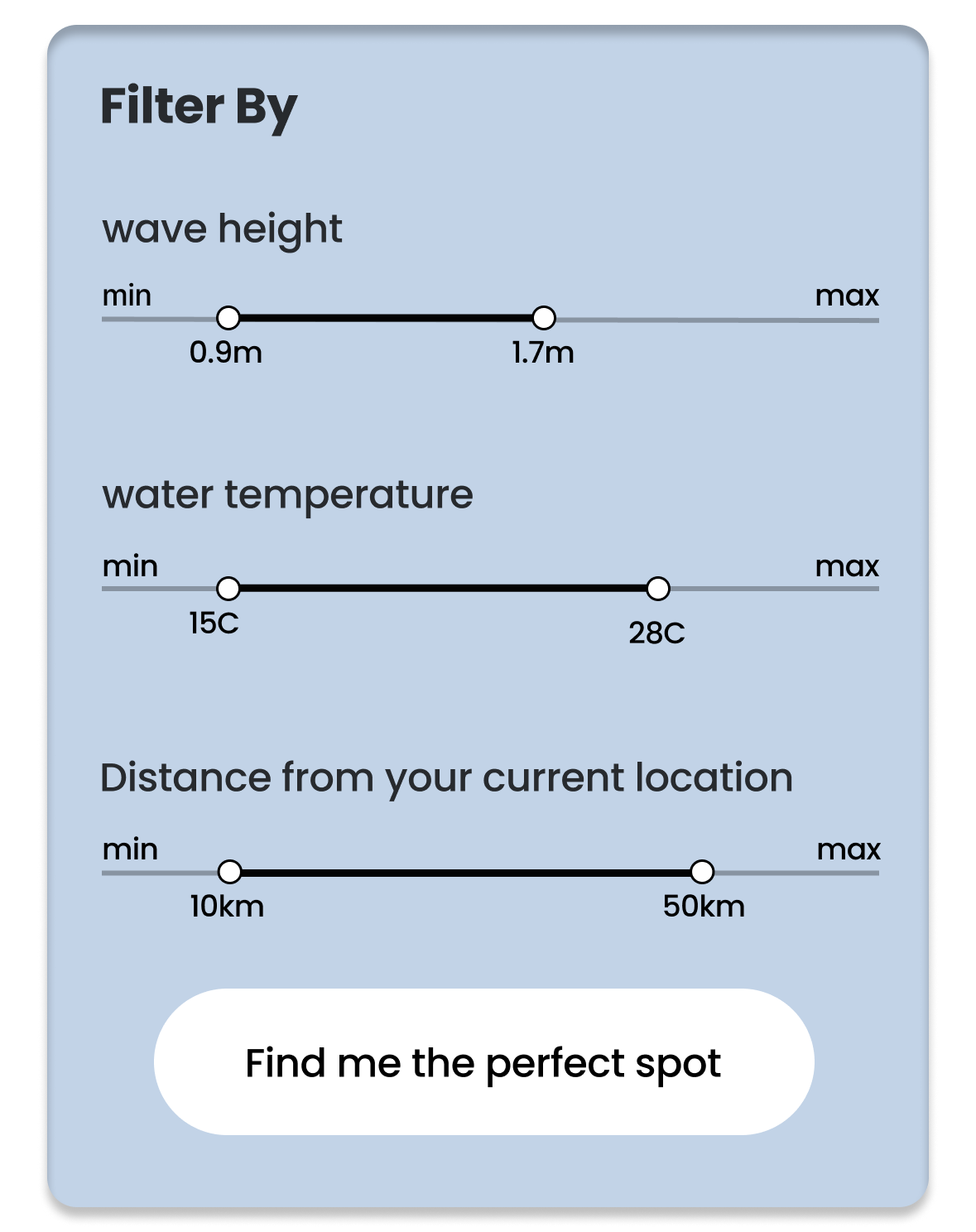 Surf Spot היא אפליקציה למציאת מיקום גלישה. מטרתה לעזור למשתמש שגולש למצוא חוף לגלוש בו בצורה היעילה והנגישה ביותר. האפליקציה מספקת חופים לפי סינון- קרבה של החוף למשתמש, ופרמטרים רלוונטיים לגולשים כגון גובה גלים, טמפ' מים.